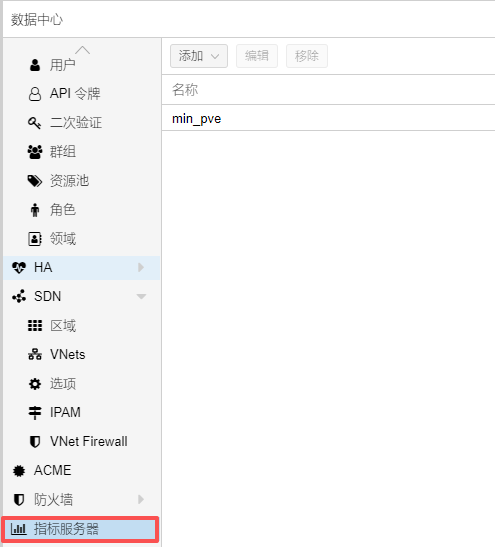 Datacenter→Metric Server→Add→InfluxDB