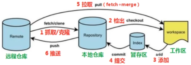 4.commit(提交):提交到本地仓库。本地仓库中保存修改的各个历史版本