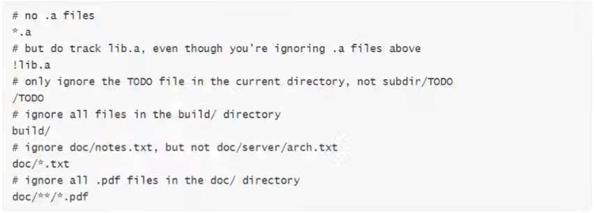 一般我们总会有些文件无需纳入Git的管理,也不希望它们总出现在未跟踪文件列表。通常都是些自动生成的文件,比如日志文件,或者编译过程中创建的临时文件等。在这种情况下,我们可以在工作目录中创建一个名为gitignore的文件(文件名称固定),列出要忽略的文件模式。下面是一个示例: