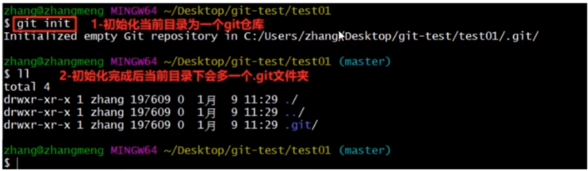 4)如果创建成功后可在文件夹下看到隐藏的.git目录。