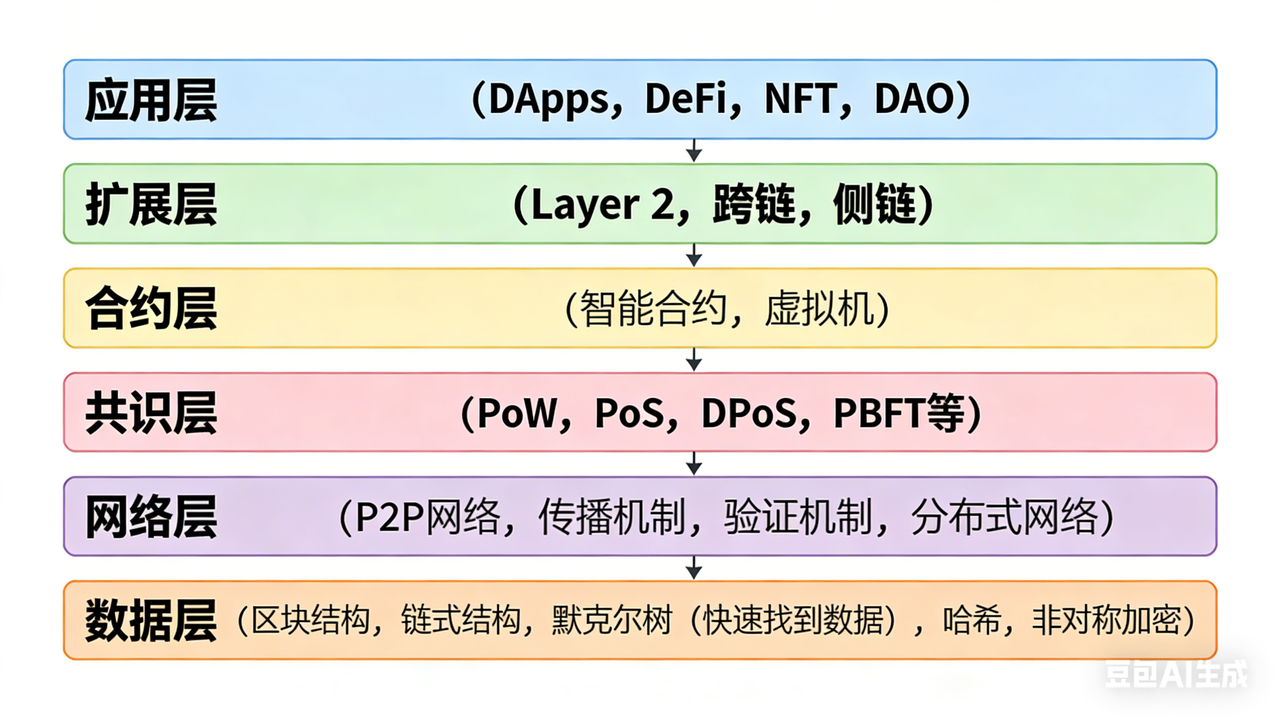 区块链的关键技术是一个多层次、相互关联的体系 ,它们共同确保了区块链系统的去中心化、安全性、不可篡改和可编程性。以下是其核心技术的分解与说明: