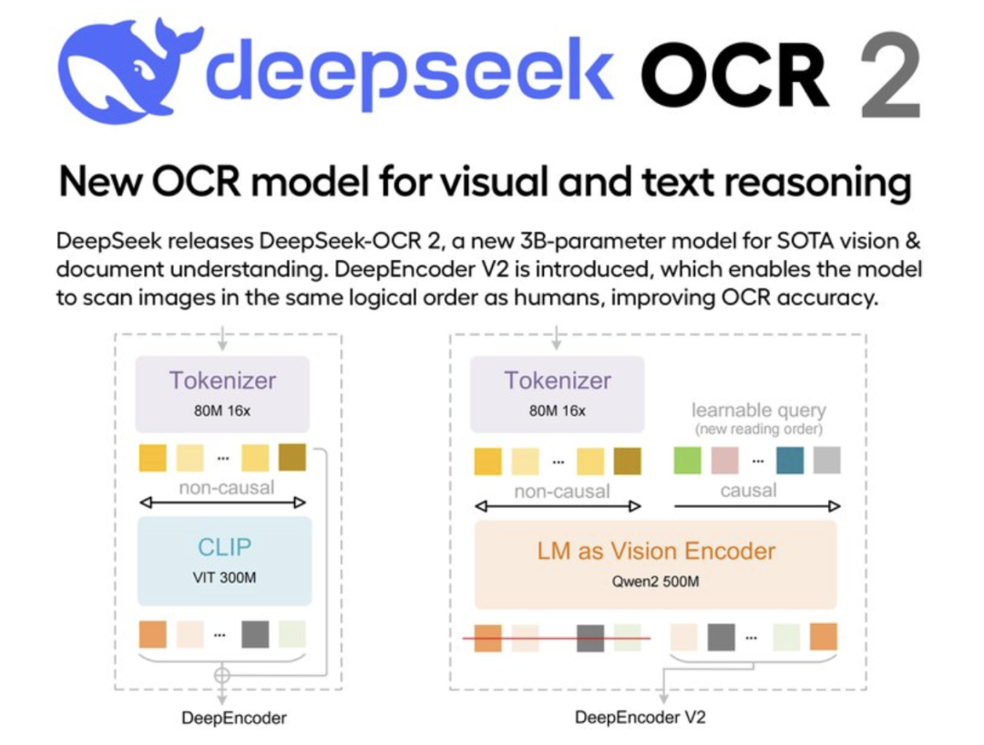 论文:发布了《DeepSeek-OCR-2: Visual Causal Flow》,对架构与实验细节做了系统说明;