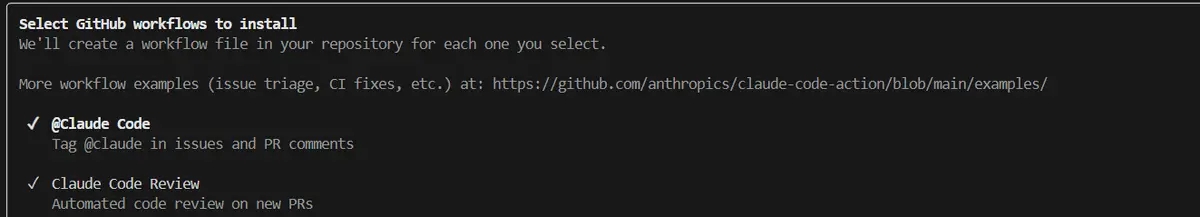 接下来就是关联仓库和插件选择,可以通过空格按需选择 Claude 插件,这里选择全部。