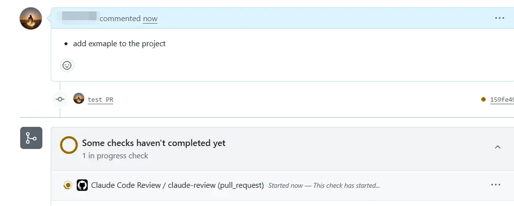通过分支修改创建 PR 合并请求后,会自动触发 Claude 审查流程。