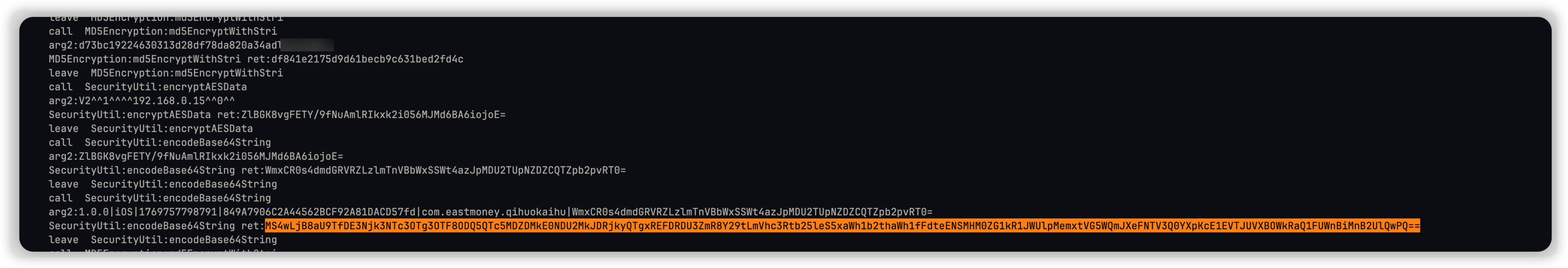 `v14 = [SecurityUtil encodeBase64String: v15]`
