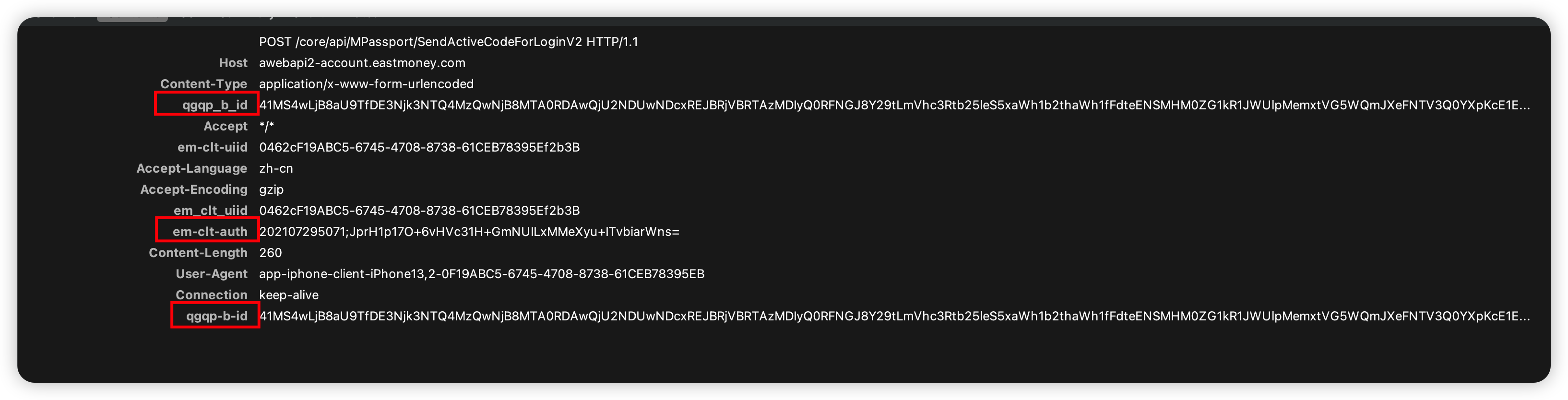 em-clt-uiid(由IDFV生成)和em-clt-auth。