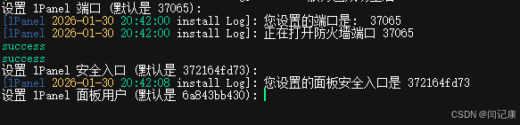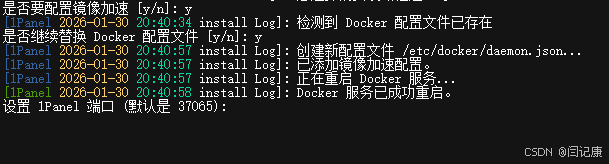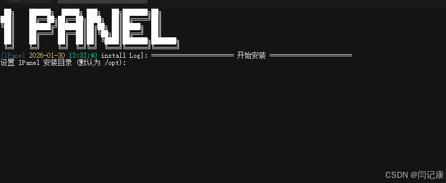 我们选择安装目录,这里我是实验机就使用默认的安装直接按空格。然后他会检测我们的服务器有没有安装docker,这里我的服务器,没有安装,我们输入y来让他自动安装docker。然后开启一系列的选项,设置端口,这里我就使用1panel的默认端口。