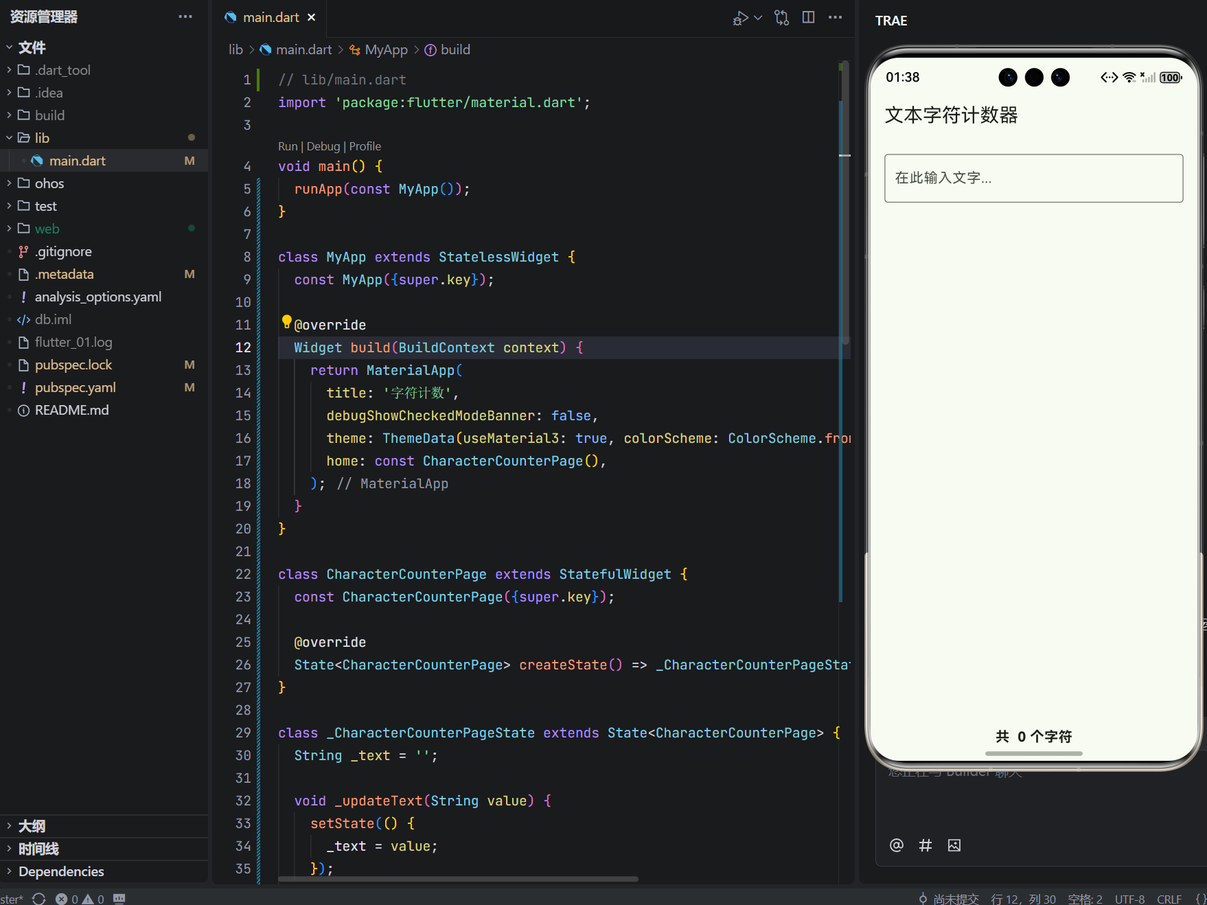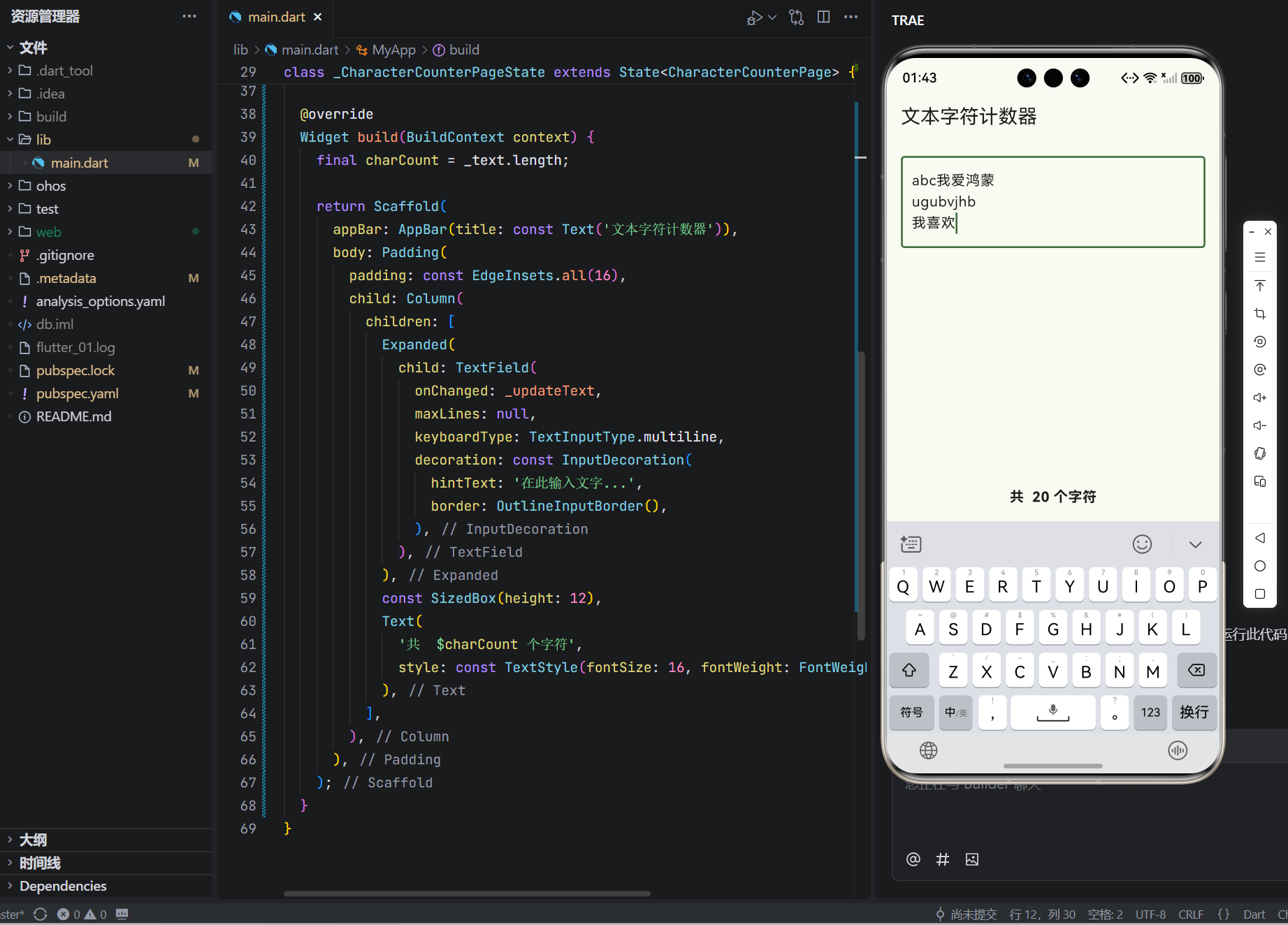 - Flutter 实时字符处理模板;
