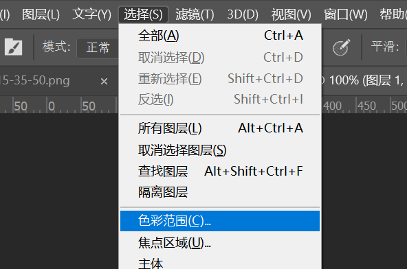 (2)在菜单栏中,找到:选择--色彩范围工具:
