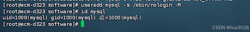 - -M:不创建家目录,因为MySQL不需要用户登录