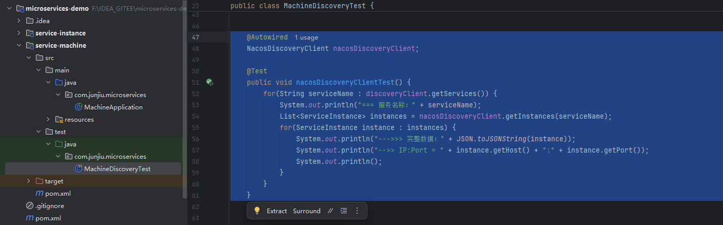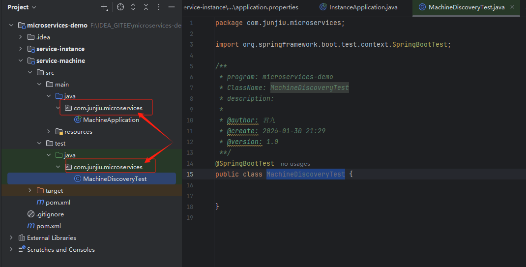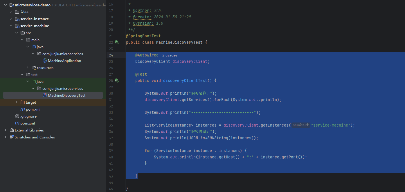 在 test 包中新增测试 MachineDiscoveryTest.java