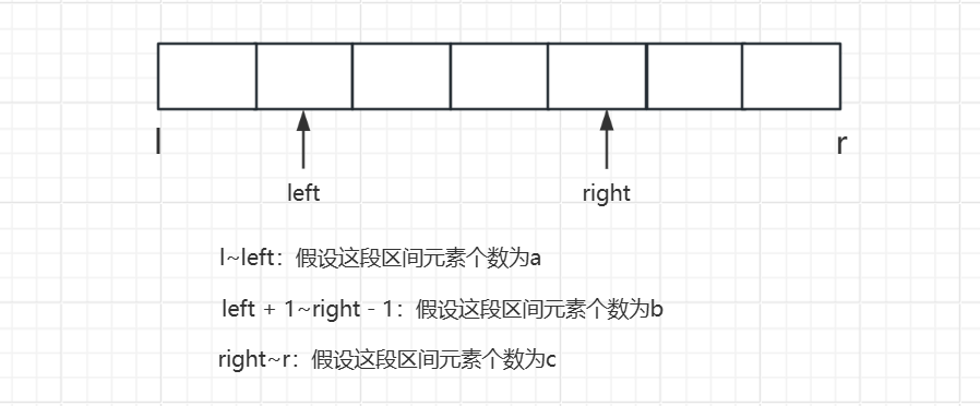 - 上面两个不成立时:去 [ right , r ] 区间继续排序找最小的 k - a - b 个元素。