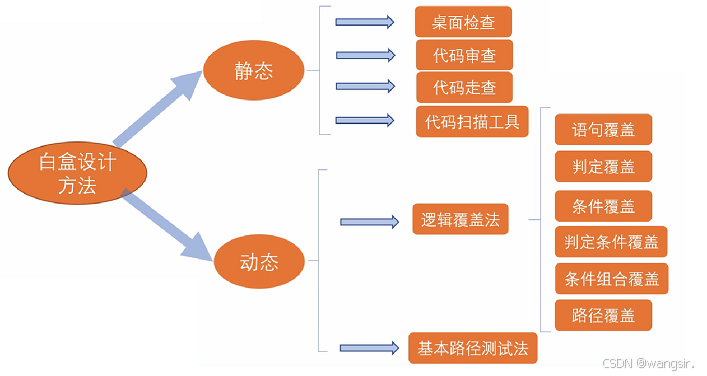 白盒测试主要分为静态测试和动态测试两种。静态测试常见于桌面检查、代码审查、代码走查、代码扫描⼯具;