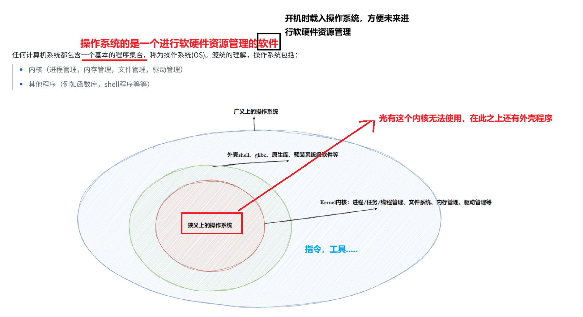 狭义操作系统:只聚焦于操作系统本身