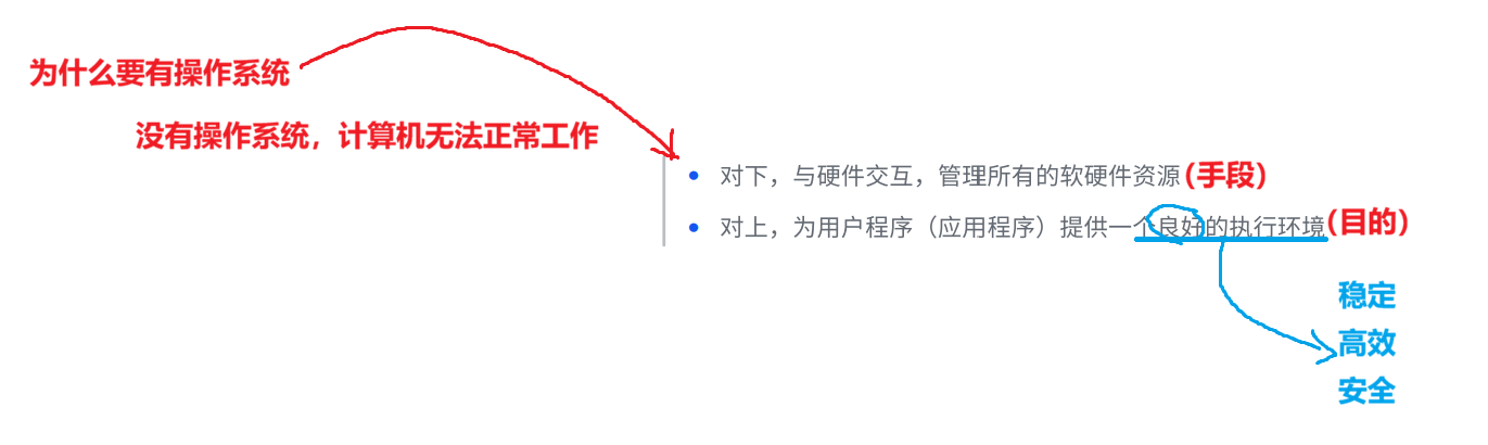 对下,与硬件交互,管理所有的软硬件资源