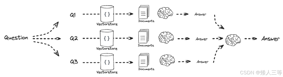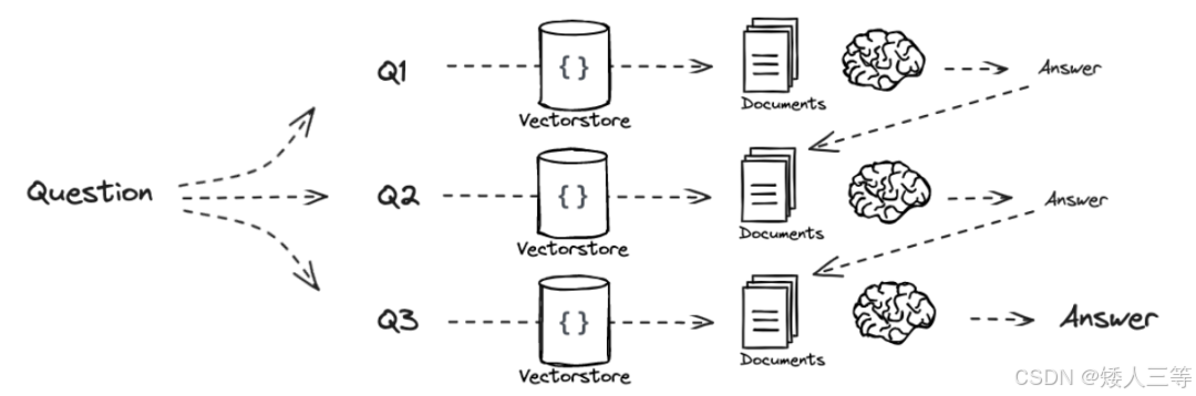 sub-question:将复杂的问题拆解为多个独立的子问题,每个子问题可以单独处理。最终通过聚合子问题的答案来生成完整的回答。