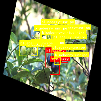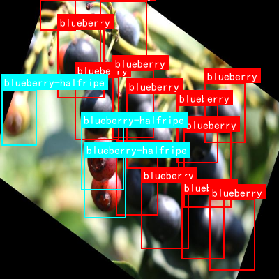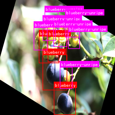 📁 我们收集了包含不同光照条件、不同背景下的蓝莓图像共计5000张,其中训练集3500张,验证集800张,测试集700张。所有图像均标注了蓝莓的位置信息和成熟度等级(未成熟、半成熟、成熟)。为了增强模型的泛化能力,我们采用了多种数据增强策略,包括随机旋转、随机裁剪、色彩抖动和MixUp等。