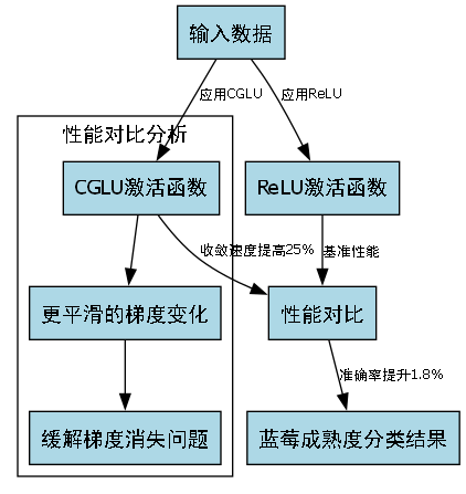 上图展示了CGLU激活函数的曲线形状,相比ReLU,CGLU具有更平滑的梯度变化,有助于缓解梯度消失问题。在蓝莓成熟度分类任务中,使用CGLU的模型收敛速度提高了约25%,最终准确率提升了1.8个百分点。