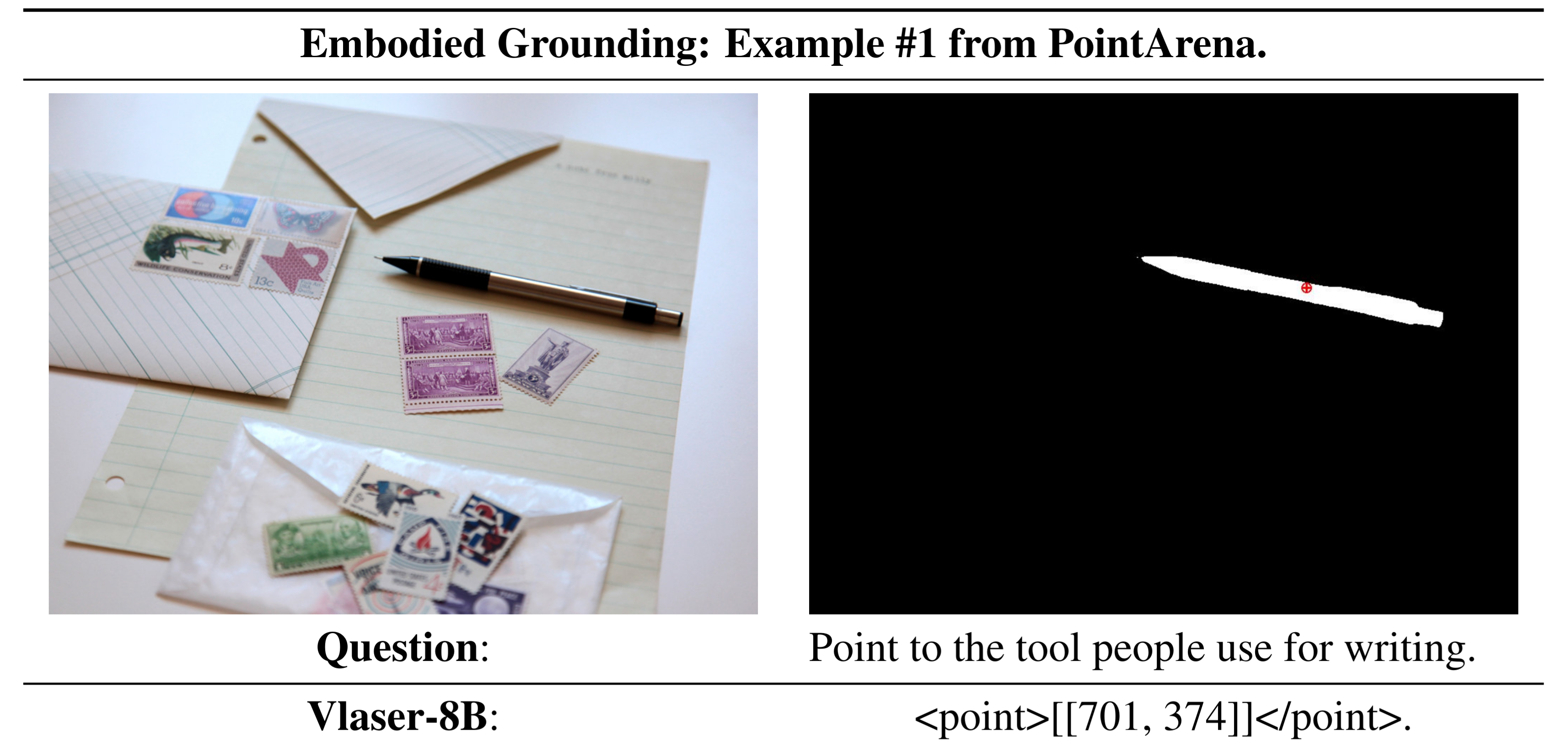- 训练数据:Vlaser-6M 中的通用具身数据(定位、具身QA、空间推理、规划)。