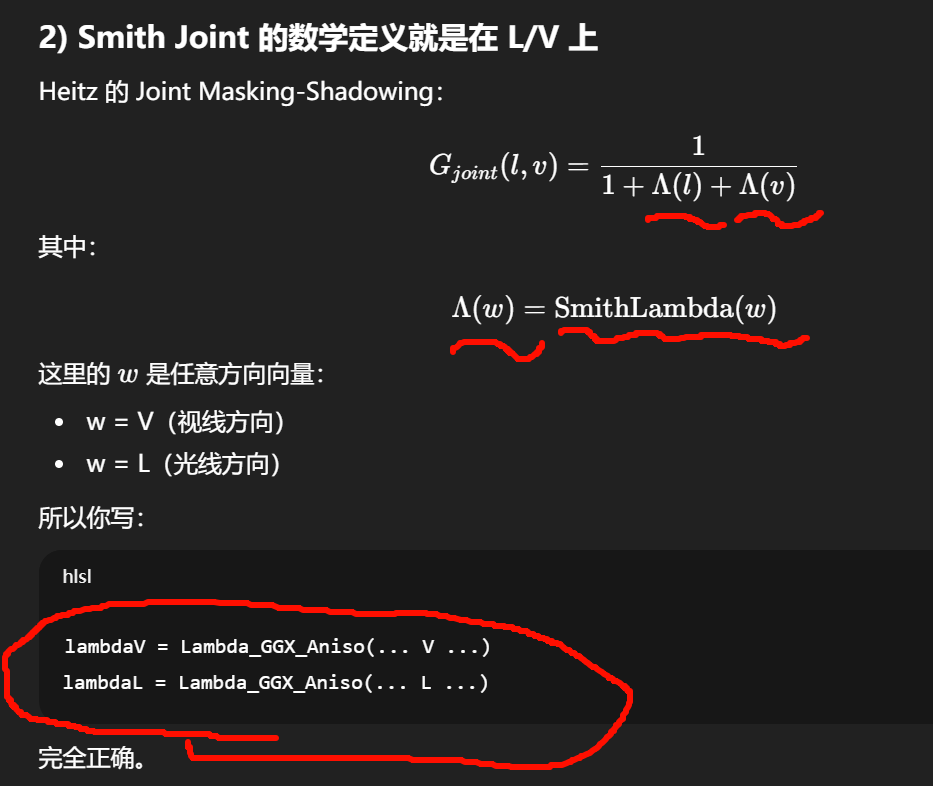 DV_SmithJointGGX_Aniso 定义的是 specular BRDF 的微表面统计结构(D+G/Vis)