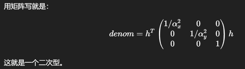 所以 denom 就是:把 h 在切线平面按 αx/αy 拉伸后,再计算它的平方长度