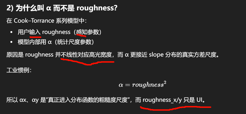 - ax/ay 的可解释性来自"这是一个各向异性 NDF 的主轴尺度参数"