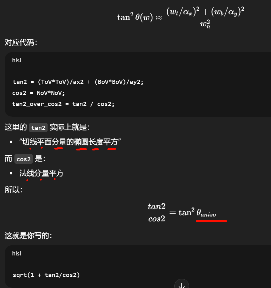 一个椭圆度量下的"长度平方"。这类结构不仅 GGX 用,Beckmann/Gaussian、Phong 的某些各向异性形式也有类似"两个轴尺度"的参数。换句话说: