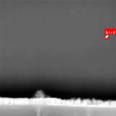 图:红外图像中的鸟类目标示例,可以看到目标边缘模糊且与背景对比度较低