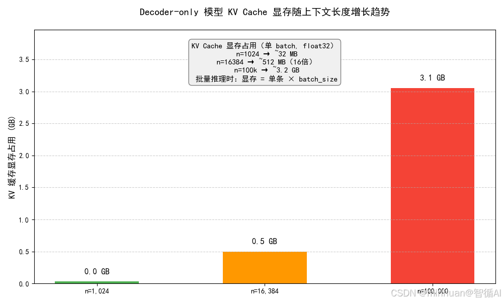 - **KV 缓存:**推理阶段缓存注意力机制中的 Key(K)和 Value(V),避免重复计算,提升推理速度,但长文本场景下 KV 缓存会急剧膨胀,占用大量显存,间接推高算力成本。