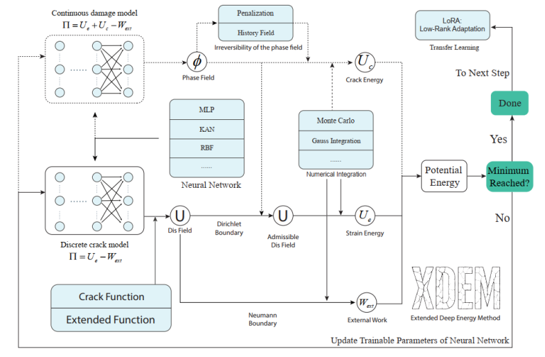 攻克反问题与断裂难题:掌握利用AI识别弹性模量场、本构方程及缺陷检测的反问题求解策略;并能应用扩展深度能量法解决离散与连续(相场)断裂力学问题。
