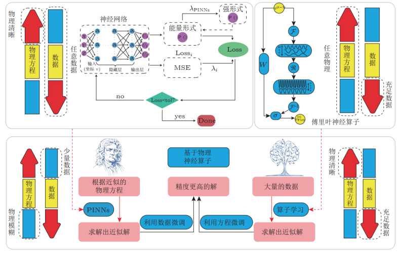 ◦ 方法论体系: PINNs、Operator Learning、Physics-Informed Neural Operators 区别与联系。