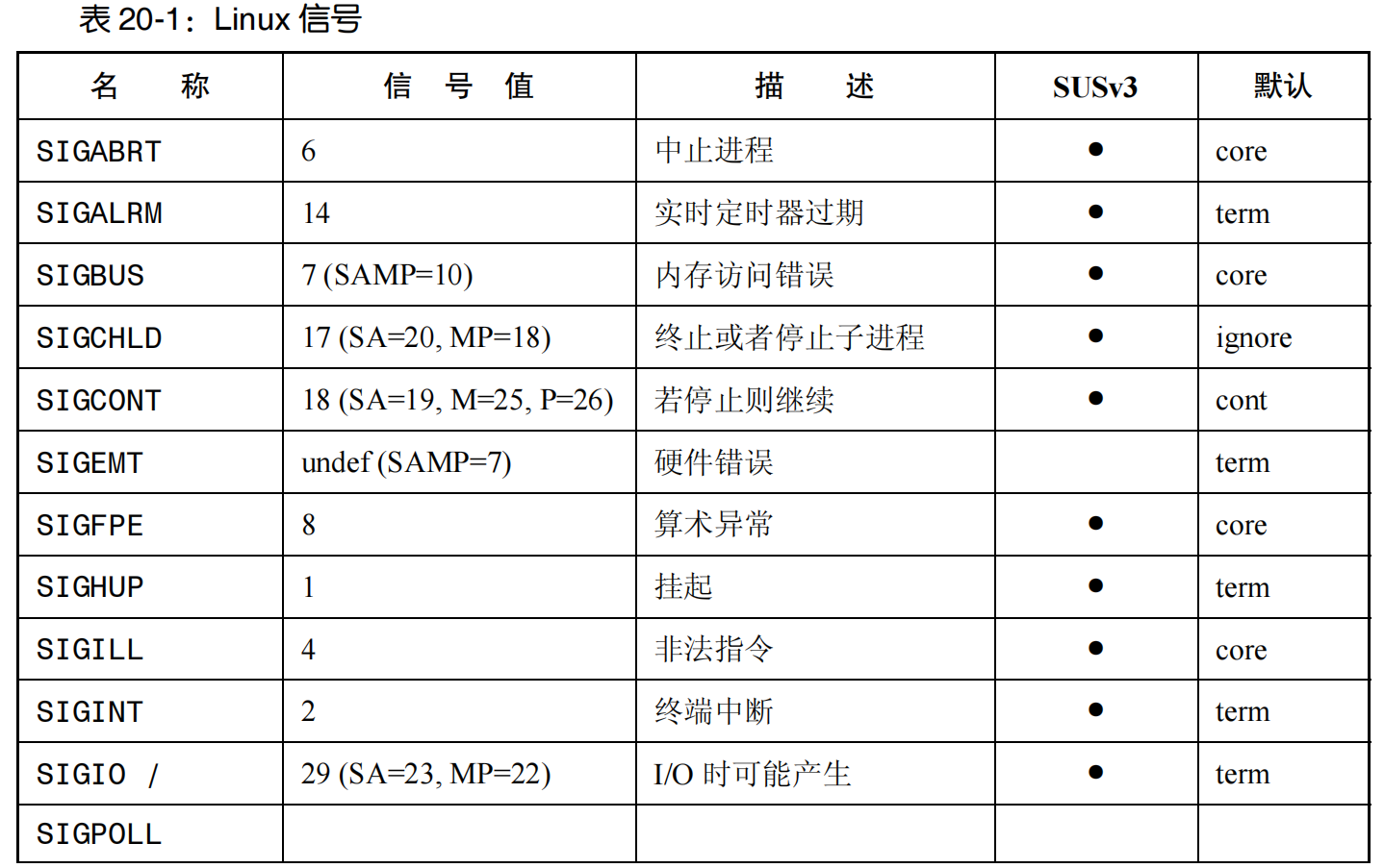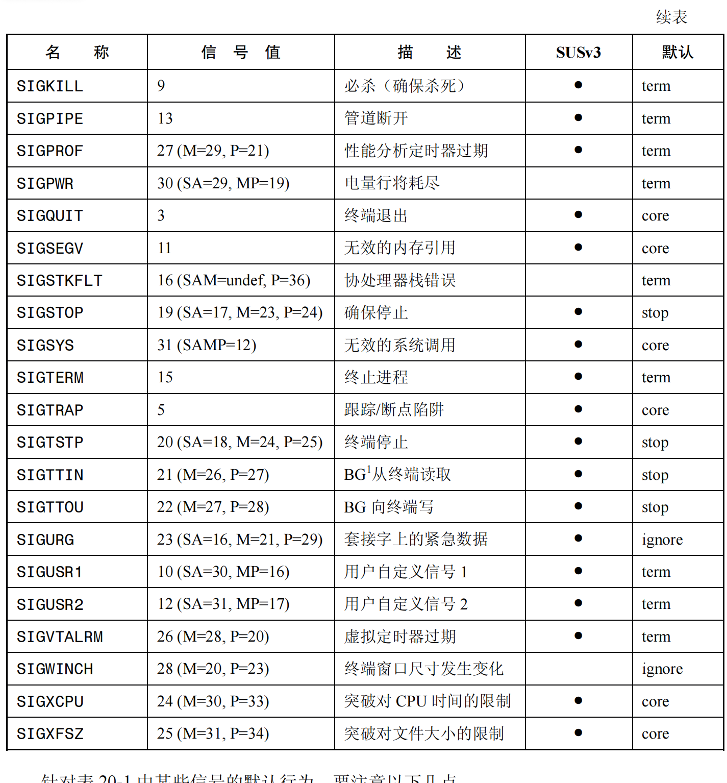 信号很多,默认处置也很难记,忘了的时候再查: