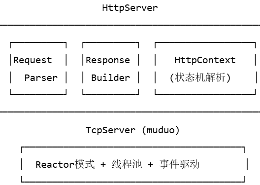 | HttpServer | 主服务器类,管理路由和请求分发 | 集成 muduo 服务器,处理客户端连接 |