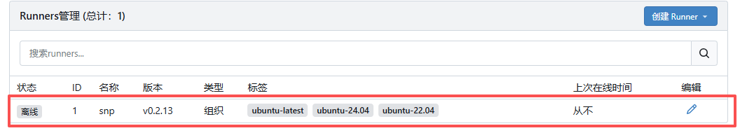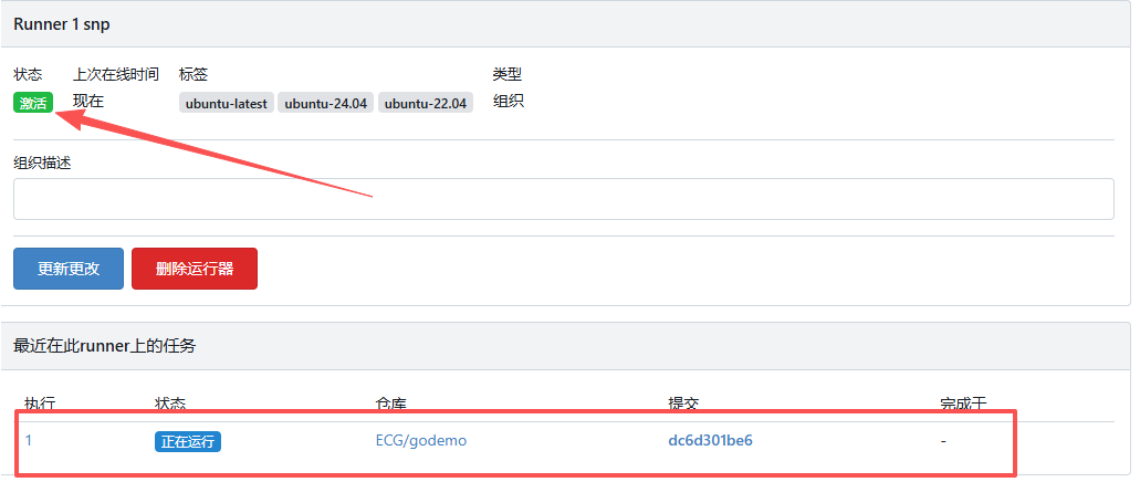 4.2 运行注册之后,检查gitea控制台设置中的Runner会新增一个