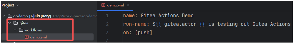7.2将以上工作流文件上传为一个以.yaml扩展名的文件,放在存储库的.gitea/workflows/目录中