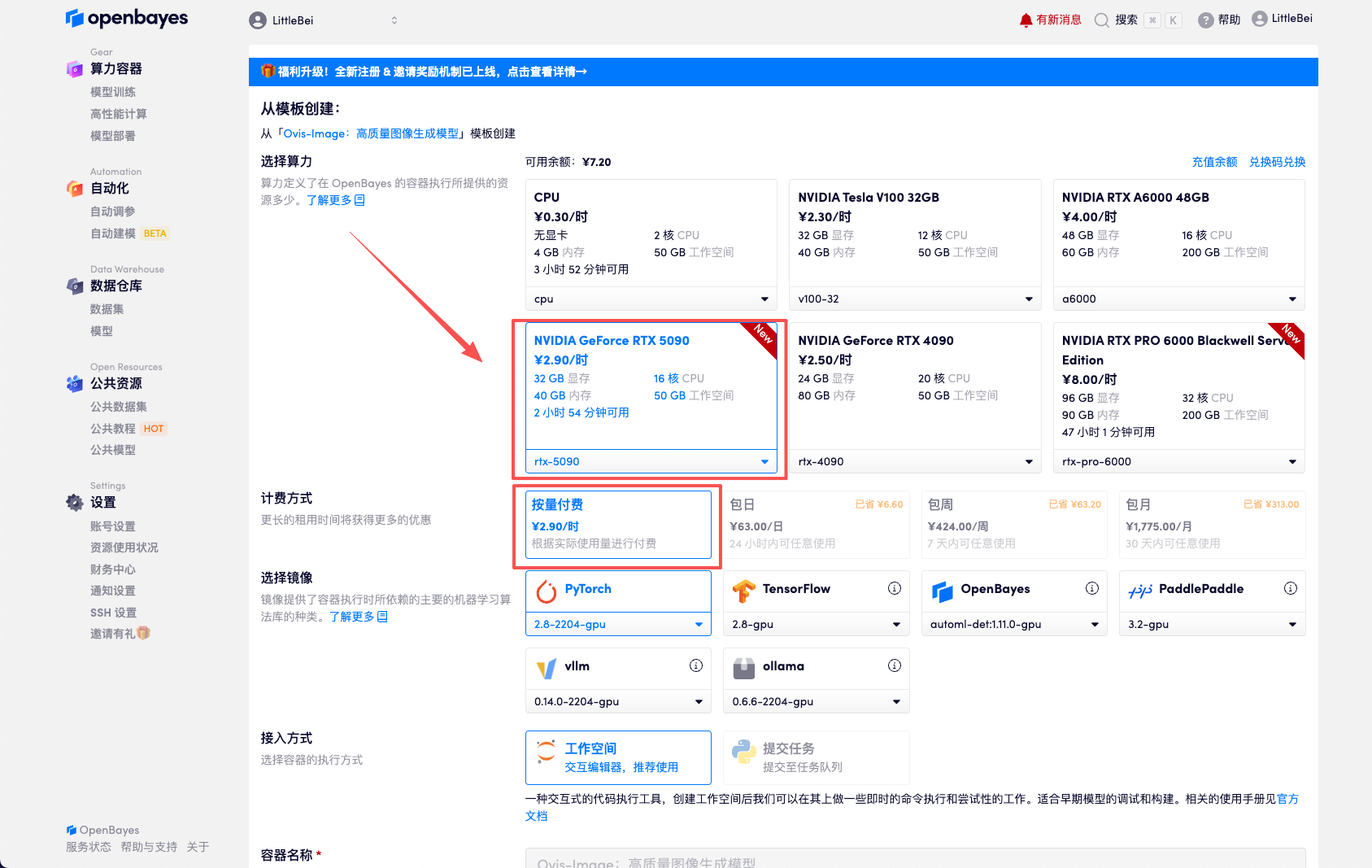 使用云平台: OpenBayes