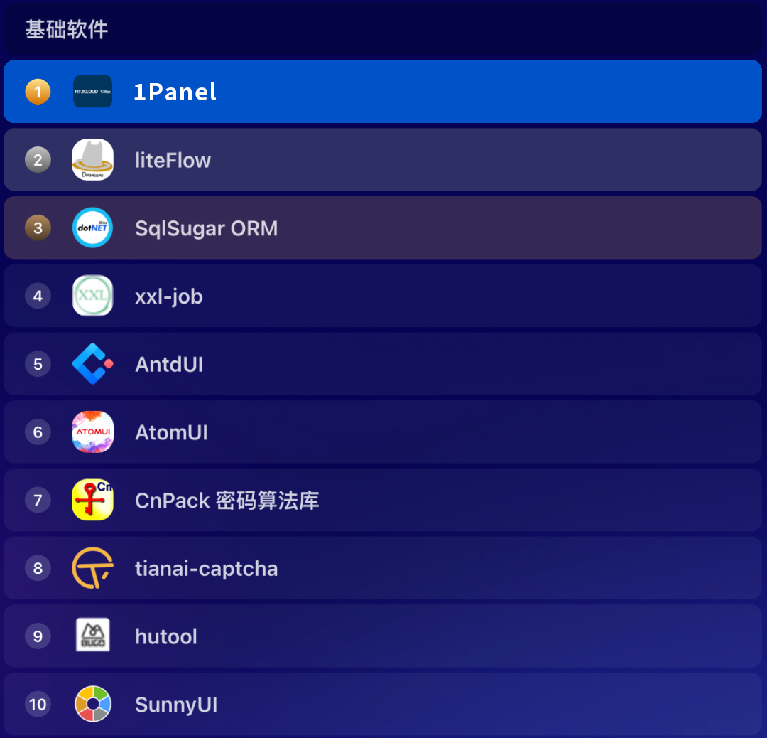 ▲附图 1Panel在Gitee 2025年度开源项目榜单"基础软件"赛道中排名第一位