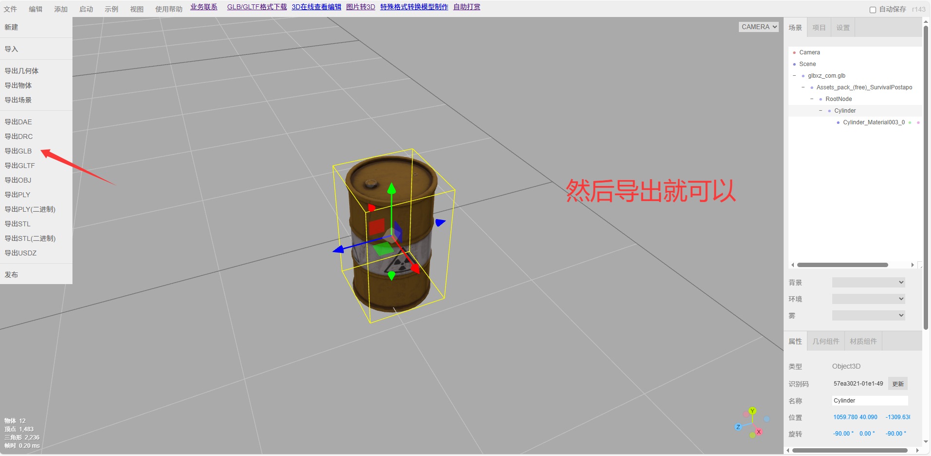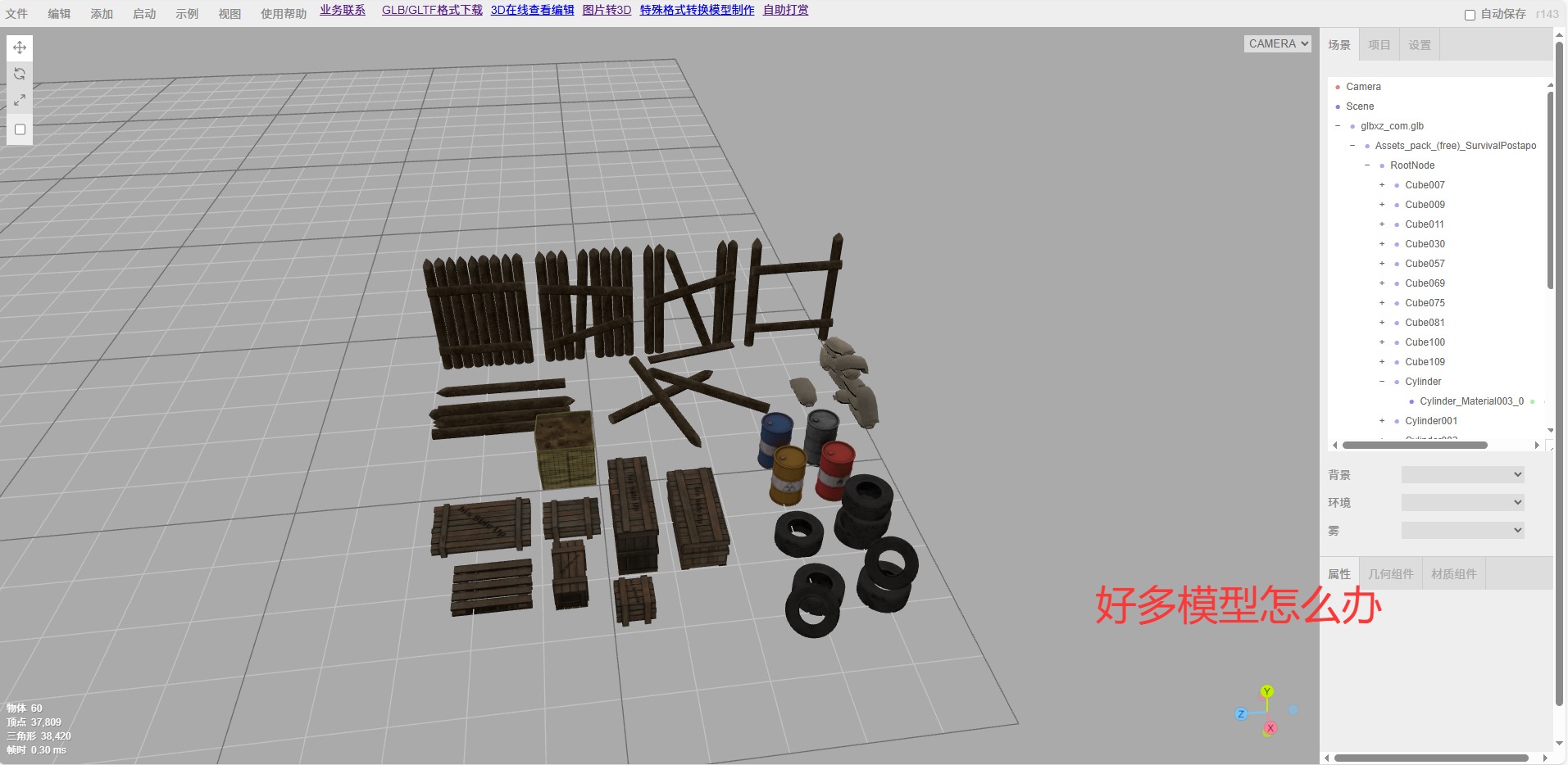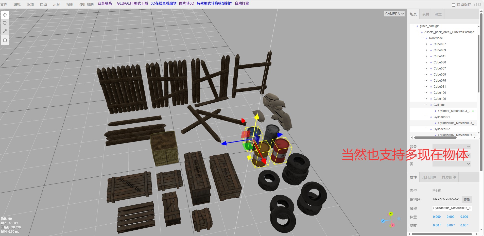 哈哈 怎么在线编辑修改查看glb/gltf格式模型,支持多选,反选择多物体,单独导出物体(免费)