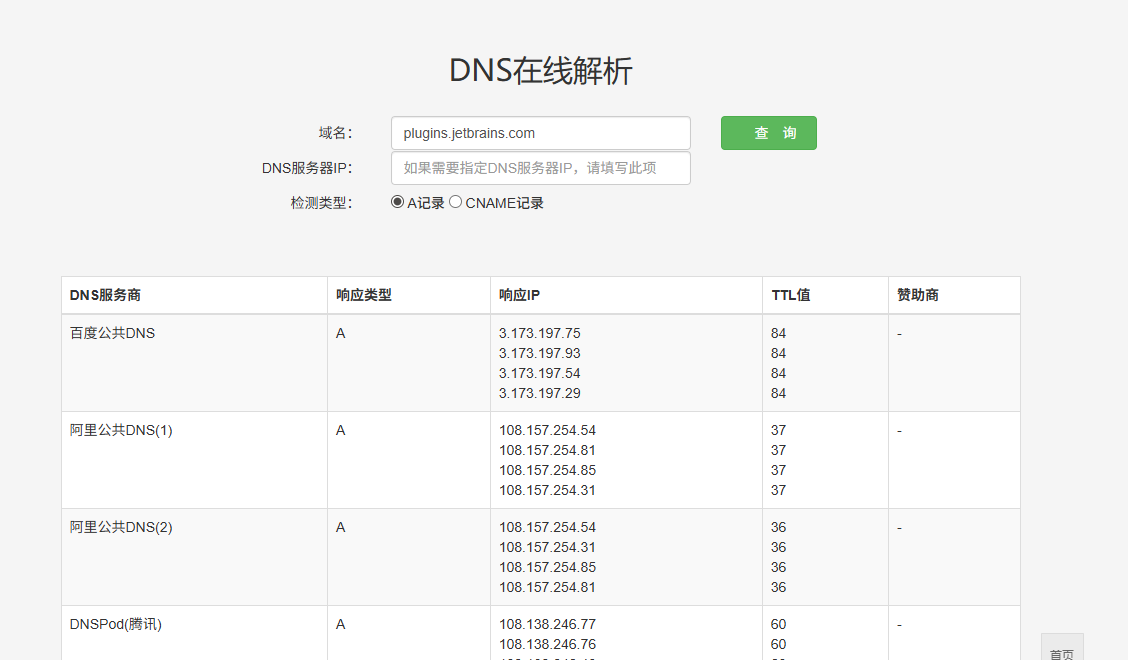 找一个解析DNS网站,例如https://www.ip33.com/dns.html,输入