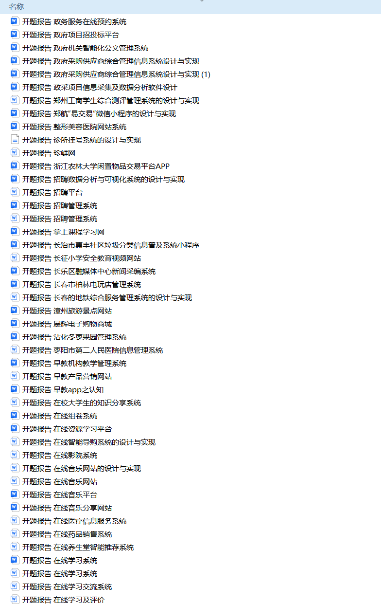 以上是H同学的毕业设计答辩过程,如果你现在还没有参加答辩,还是开题阶段,已经选好了题目不知道怎么写开题报告,可以下面找找有没有自己符合自己题目的开题报告内容,列表中的开题报告都是往届真实的开题报告可参考