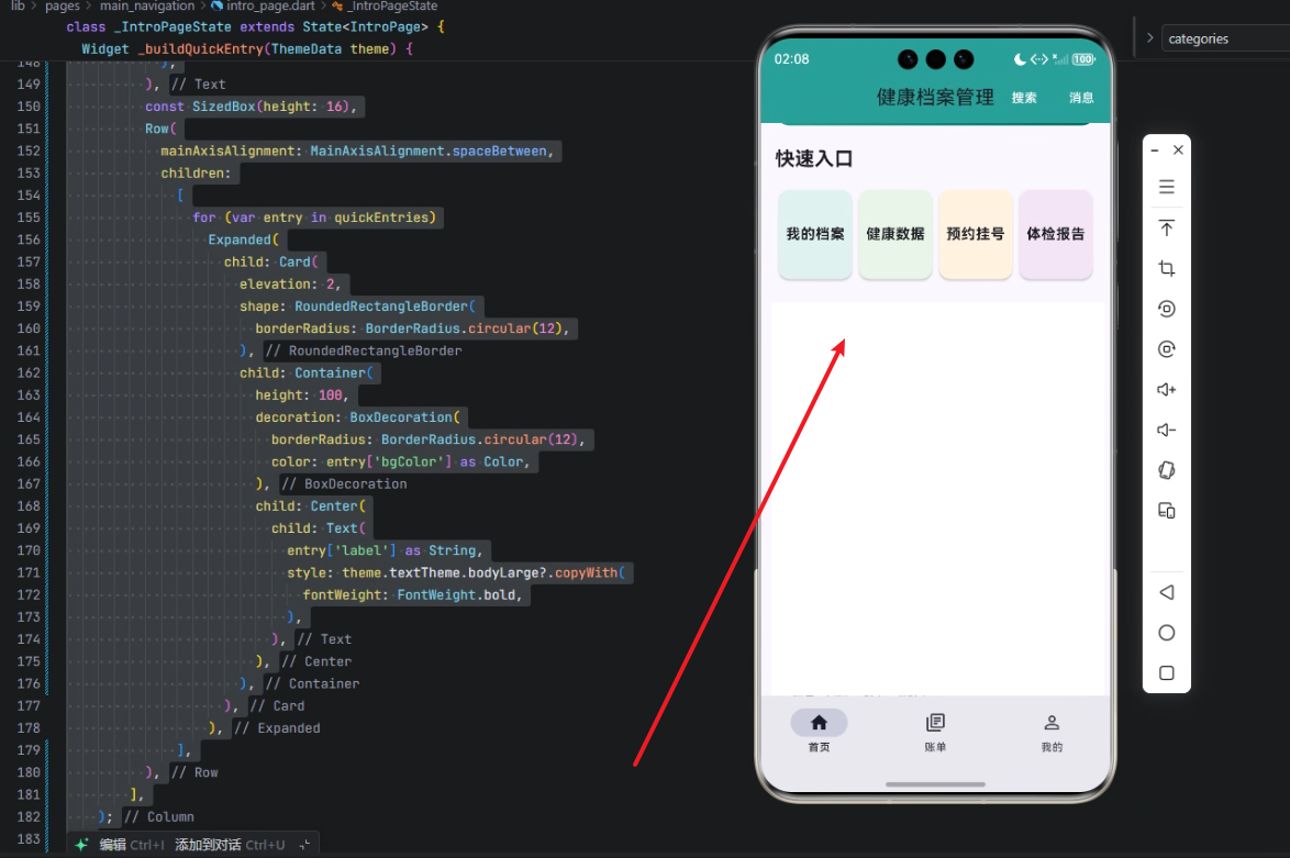 在数字医疗时代,用户对于健康数据的管理需求越来越高。无论是个人健康档案、体检报告,还是在线预约挂号,快速、直观的入口设计都是提升用户体验的重要环节。本文将以 Flutter × OpenHarmony 为开发平台,展示如何构建一个高效、可扩展的"快速入口"组件,帮助用户在健康档案管理应用中快速访问关键功能。
