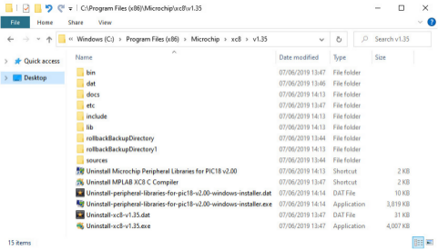 Folder C:\Program Files (x86)\Microchip\xc8\v1.35