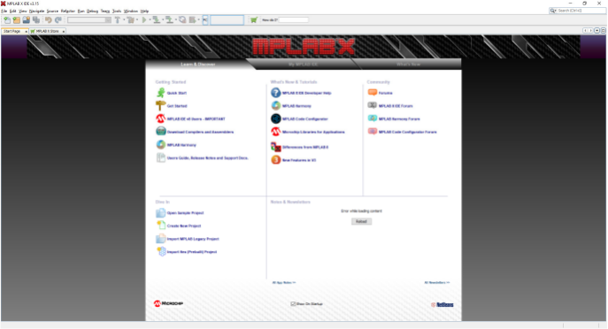 After the first screen "MPLABX" the below screen will appear.