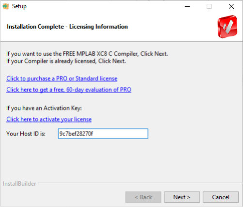 Installation of xc8 C Compiler
