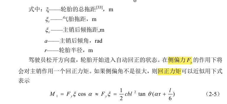 影响因素: 汽车的转向回正力矩和主销内倾角、车轮侧偏角呈线性正比的关系,与车速无关。