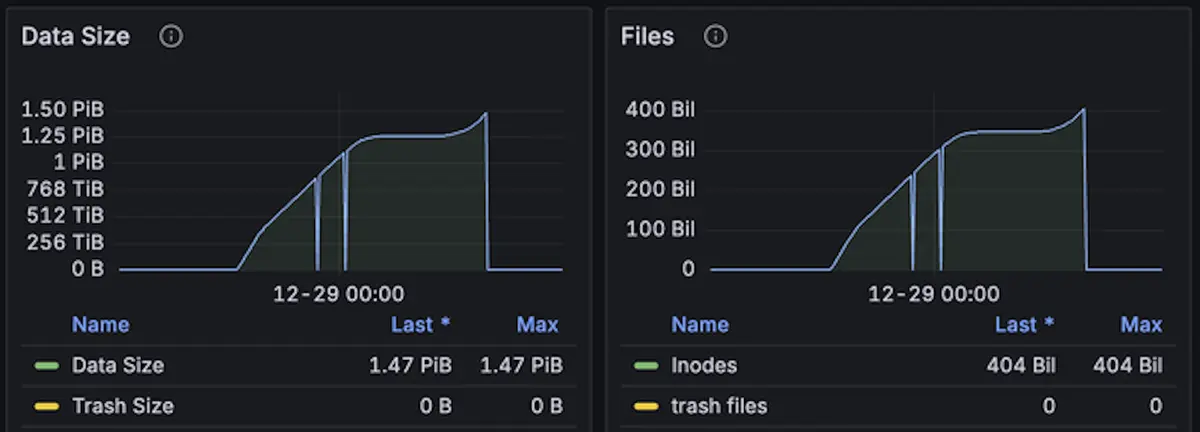 由于云端资源有限,本次测试只写到 4,000 亿文件。在压测过程中,系统表现稳定,且硬件资源尚有富余。后续,我们会继续尝试更大规模的测试。