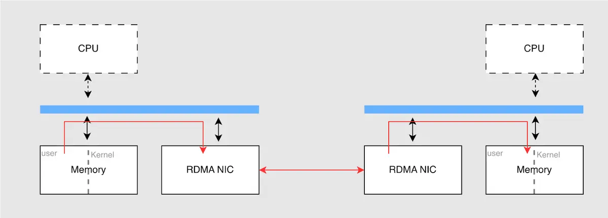 - 低延迟:通过直接从内存到内存的传输,绕过操作系统的网络协议层,减少 CPU 的中断和上下文切换,从而降低延迟。
