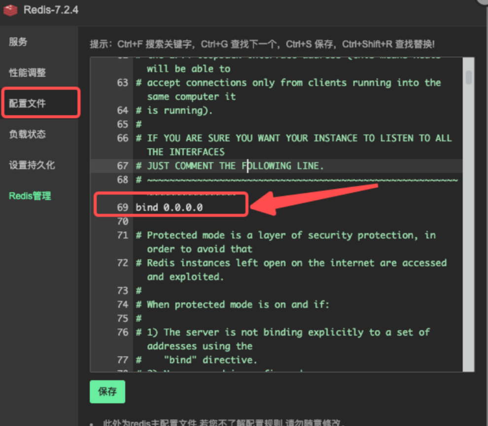 修改 Redis 配置文件禁用保护模式,把 protected-mode no 改为 protected-mode yes