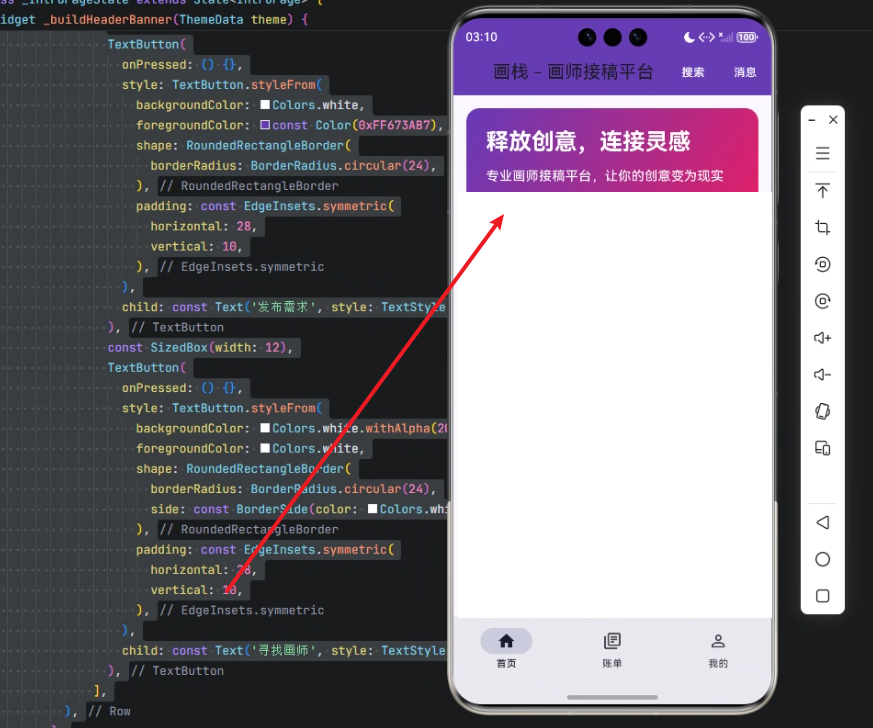 在跨端移动应用开发中,用户界面的视觉呈现直接影响用户体验和平台价值。对于创意类平台,如「画栈」------一个专业画师接稿平台------顶部横幅(Header Banner)是首屏用户看到的核心元素,它不仅承载品牌形象,也承载用户行动引导(CTA)。