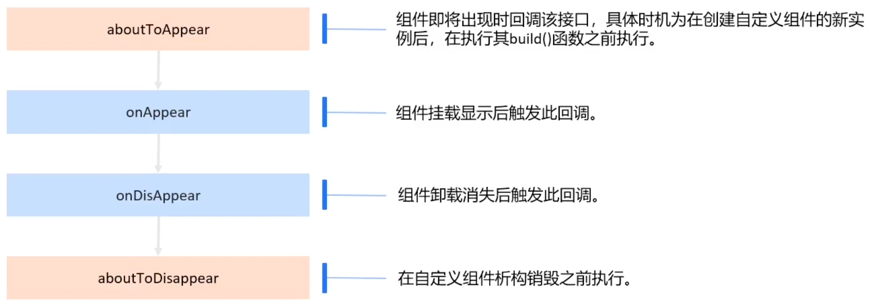 onDisAppear事件:组件卸载消失时触发此回调。该事件在组件卸载时触发。